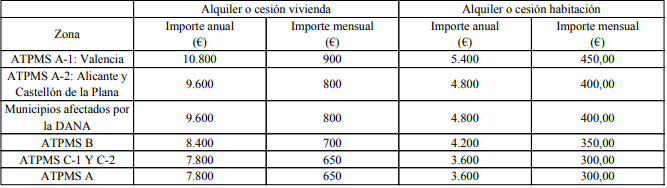 Estas son las cuantías máximas de alquiler mensual permitidas según la zona: